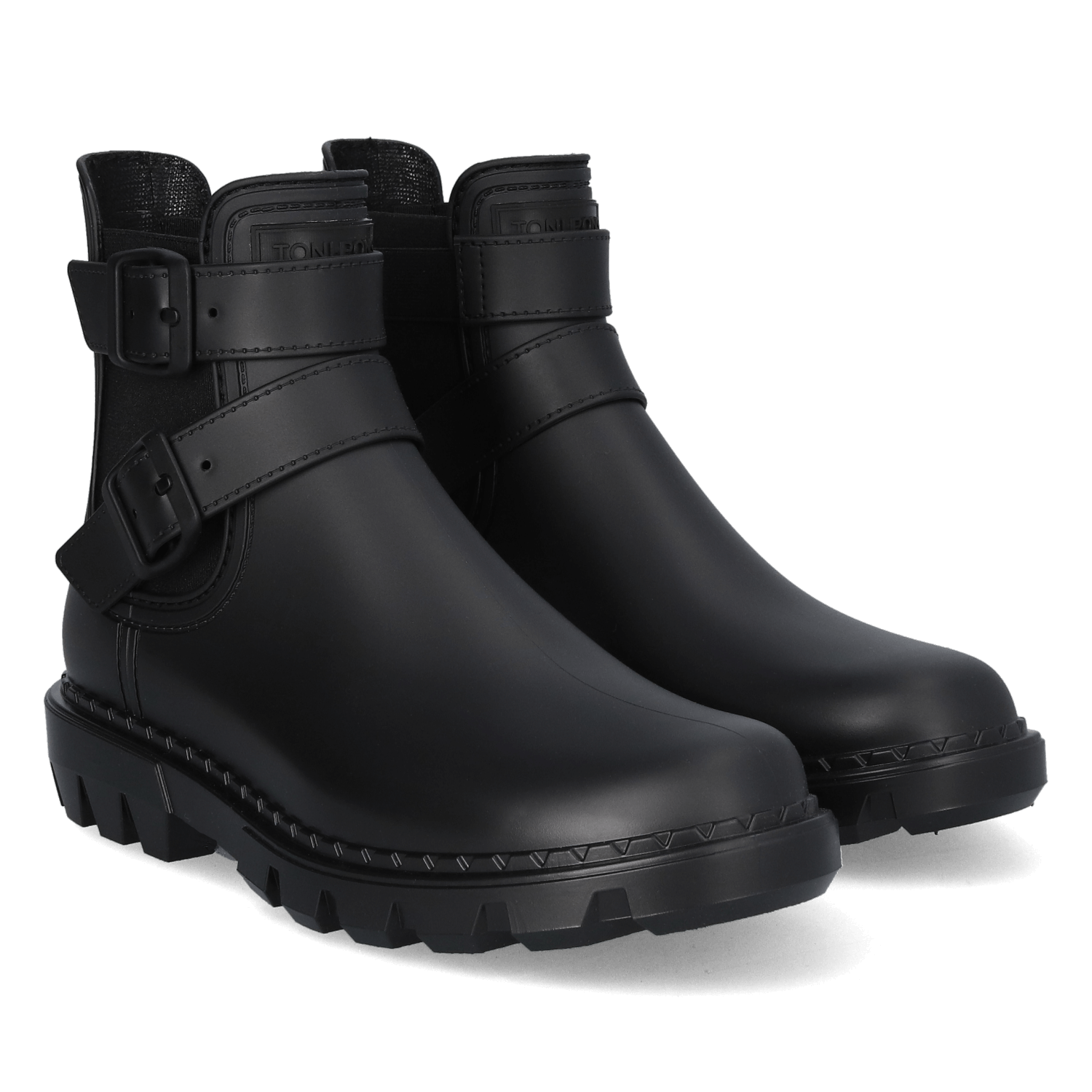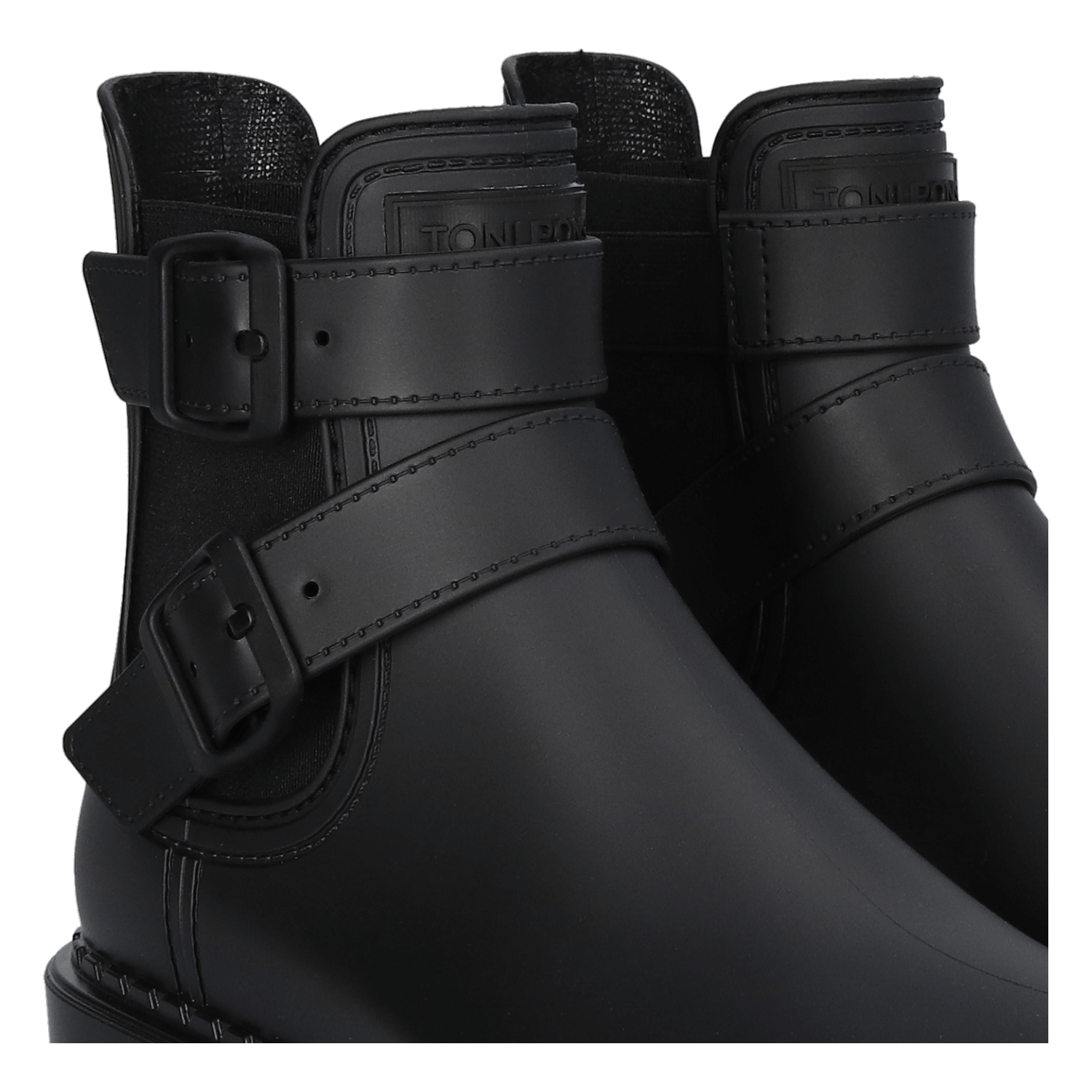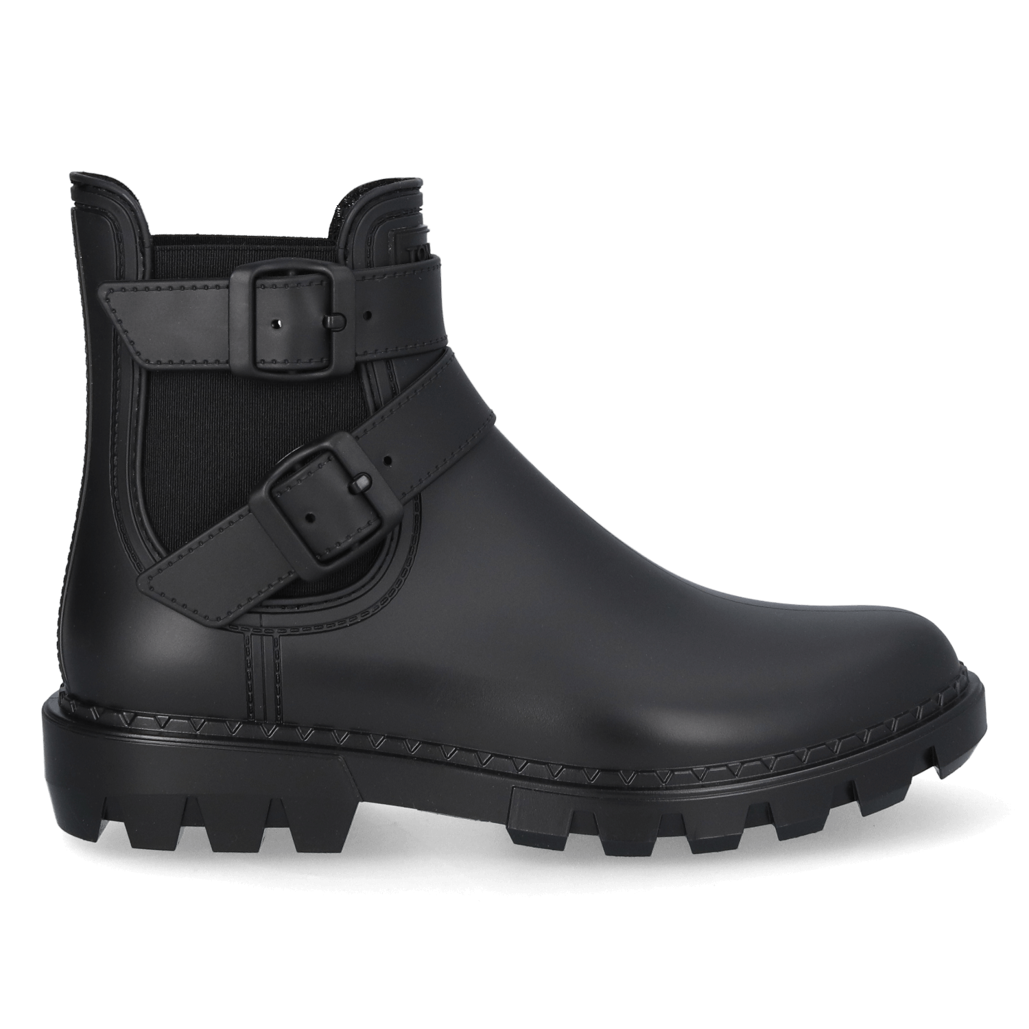 De laarsjes zijn uitgevoerd in chelsea-stijl met twee gespsluitingen als stoer detail. De elastische zijpanelen zorgen voor eenvoudig aan- en uitrekken. De rubberlaarsjes zijn waterdicht om je voeten