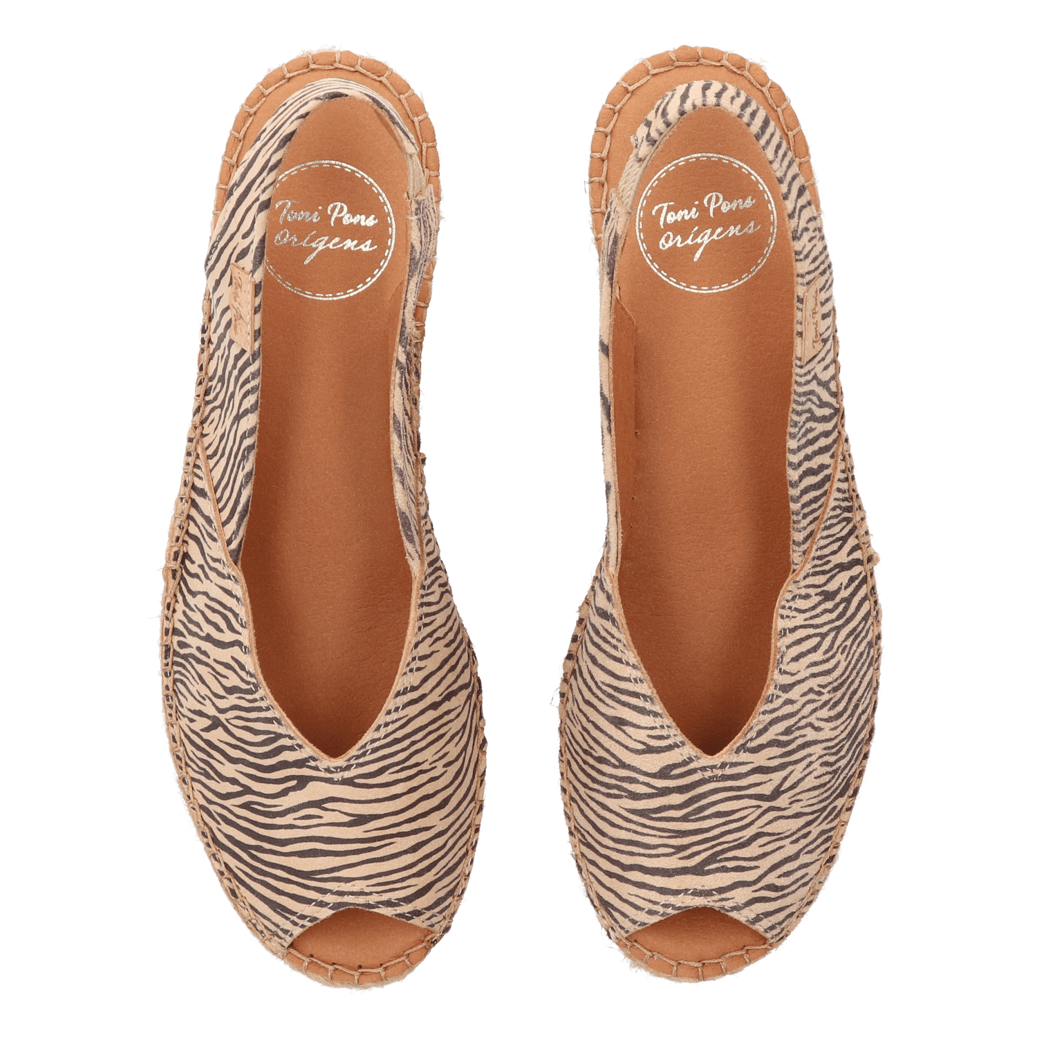 De Bernia-ZB is een peeptoe espadrille uit de Orígens-collectie van Toni Pons. De espadrille heeft een leren bovenwerk uitgevoerd met trendy zebraprint en ademende textielvoering. De jute sleehak heeft een totale hoogte van 5 centimeter, waarvan 3 cm hak en 2 cm zool. De loopzool van rubber zorgt voor goede grip. De zacht gevoerde binnenzool is bekleed met leer en de hielband heeft een geïntegreerd elastiek voor makkelijk aantrekken en goede houvast. het maakt deze espadrilles een stijlvolle en comfortabele keuze voor dagelijks gebruik tijdens warme dagen. Het model valt normaal op maat. Zit je tussen twee maten in, dan adviseren we te kiezen voor de grotere maat.